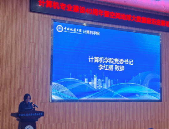 随后,学院党委书记李红丽在“空间地球大数据前沿进展论坛”开幕式上致辞。她回顾了学院成立20周年和计算机专业建设40年来的发展历程,高度评价了学院在空间地球大数据与智能化软件领域取得的特色成果。李书记表示,学院将以本次论坛为契机,深化学术交流与协同创新,持续推进学科高质量发展,为服务国家科技自立自强贡献力量。