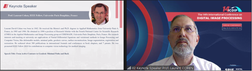 由beat365在线体育官网登录入口(武汉)beat365在线体育官网登录入口主办的第十四届数字图像处理国际会议(ICDIP 2022)于2022年5月20-23日成功举办线上会议。本次会议共有来自英国、法国、美国、日本、澳大利亚、希腊、印度、阿根廷等国以及中国香港,北京、上海、陕西、辽宁、浙江、湖北和湖南等地的27位专家陆续分享了他们在数字图像处理等领域的最新研究成果。国内外专家和学者围绕图像质量和图像安全、图像分类与算法、图像分割、光学成像和系统、数字图像处理与应用、三维模型与图像重建等16个主题,进行了广泛而深入的学术交流与研讨。