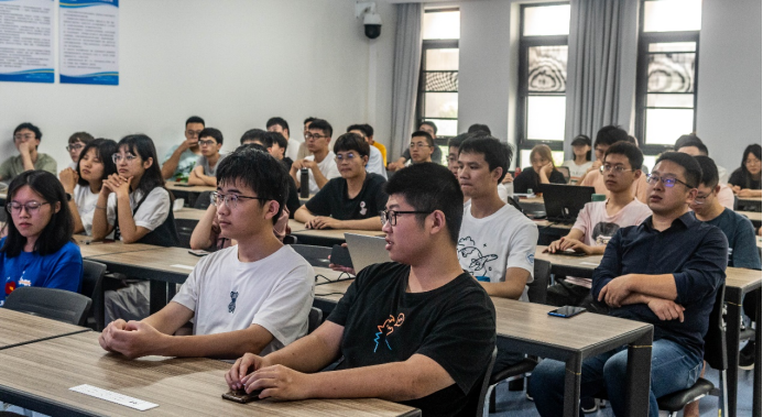 张夏林老师首先对科大讯飞公司的主营业务以及发展现状进行了简要介绍。作为我国人工智能产业的头部企业,科大讯飞高层管理人员的到来让同学们对即将进行的交流分享会兴趣盎然,会场气氛一下子活跃起来。