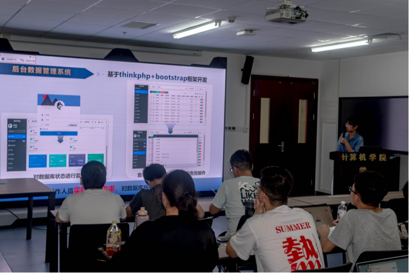 “晴日听暖风,蛙鸣夏令新。”炎炎夏日正当时。6月28日,beat365官网空间信息与数字技术专业194191、194192班学子在未来城校区科教一楼235实验室,召开了一场别开生面的“发布会”,向计算机应用系师生展示自己和团队为期一个月的应用开发实习的辛勤成果,展现了空信人勇立潮头、敢闯敢干、引领风尚的精神风貌。