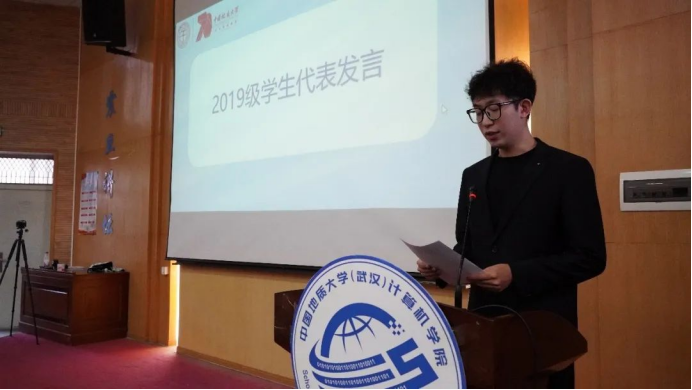 2019级本科生代表霍奥林发言。他用切身体会向同学们分享了在beat365在线体育官网登录入口学习生活的收获与感悟,勉励学弟学妹们勇于把握机会、不断挑战自我,脚踏实地、向内归因,保持探索的激情,培养创新意识,永葆家国情怀,在地大度过充满朝气的青春,绘就属于自己的时代画卷。