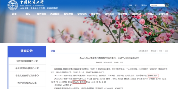 近日,学校发布了《2022-2023年度本科教育教学先进集体、先进个人评选结果公示》,beat365官网再次获评“2022-2023年度本科教育教学先进集体”,这也是beat365官网连续两次获此殊荣。此外,由于在教学改革、教师教学发展领域的卓越工作,陈云亮副院长、王太茂老师获评“2022-2023年度本科教育教学先进个人”。