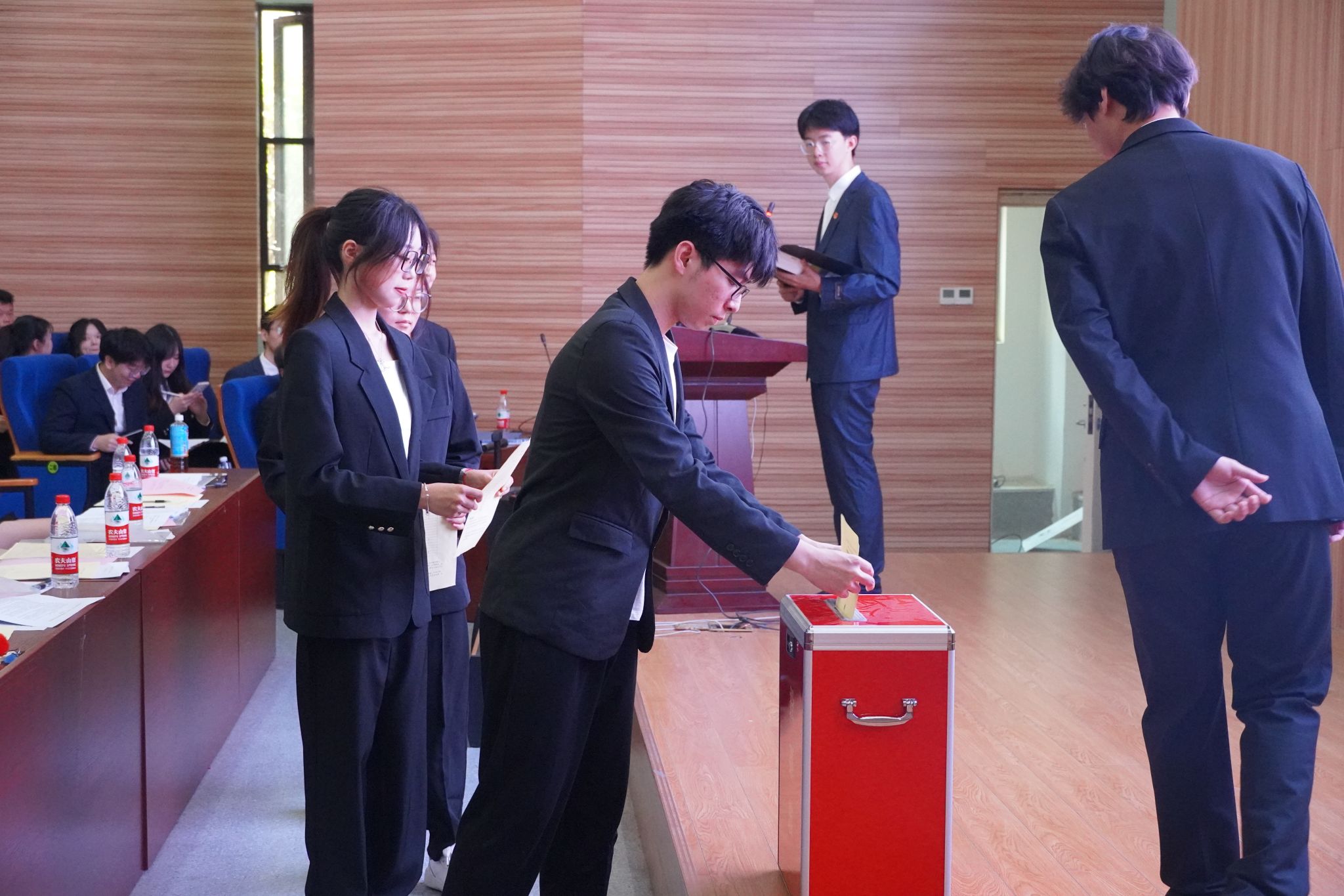 2023届beat365在线体育官网登录入口学生会主席团成员朱瑞东宣读《代表资格审查报告》和《候选人资格审查报告》。