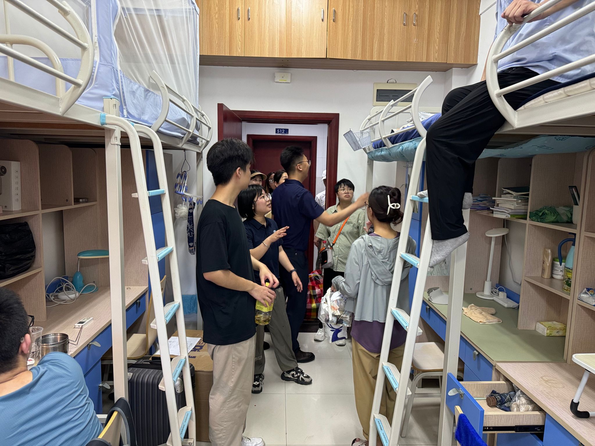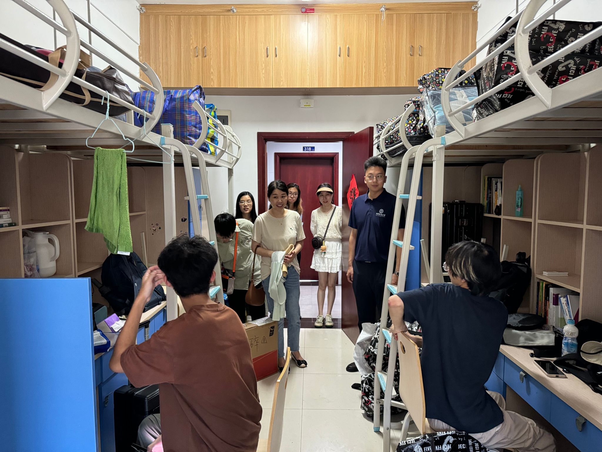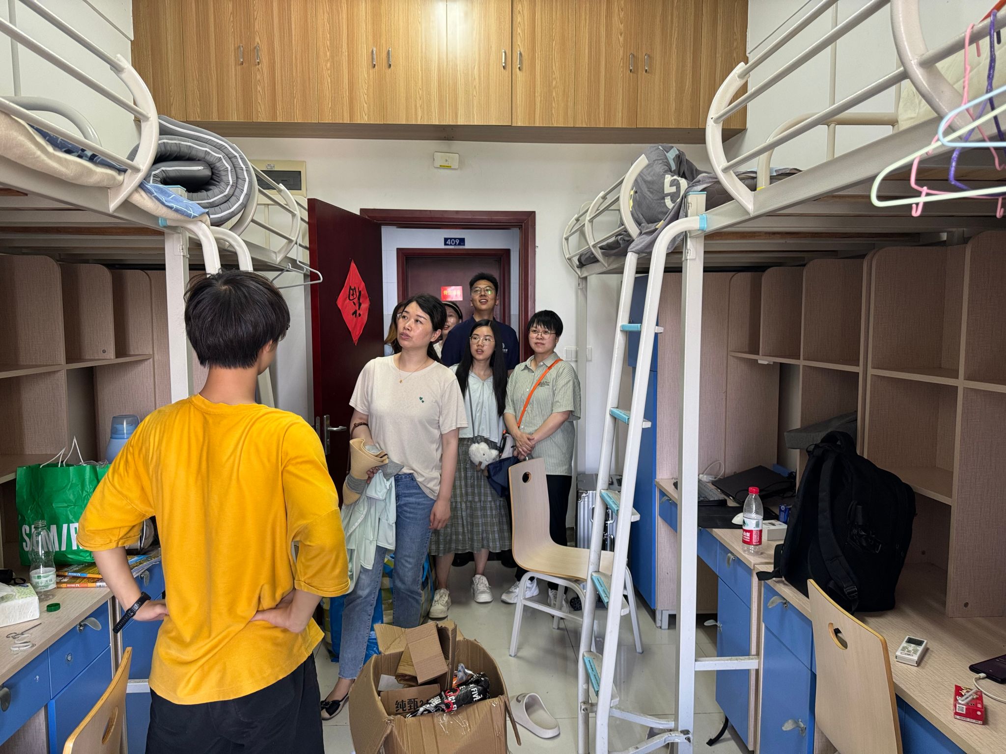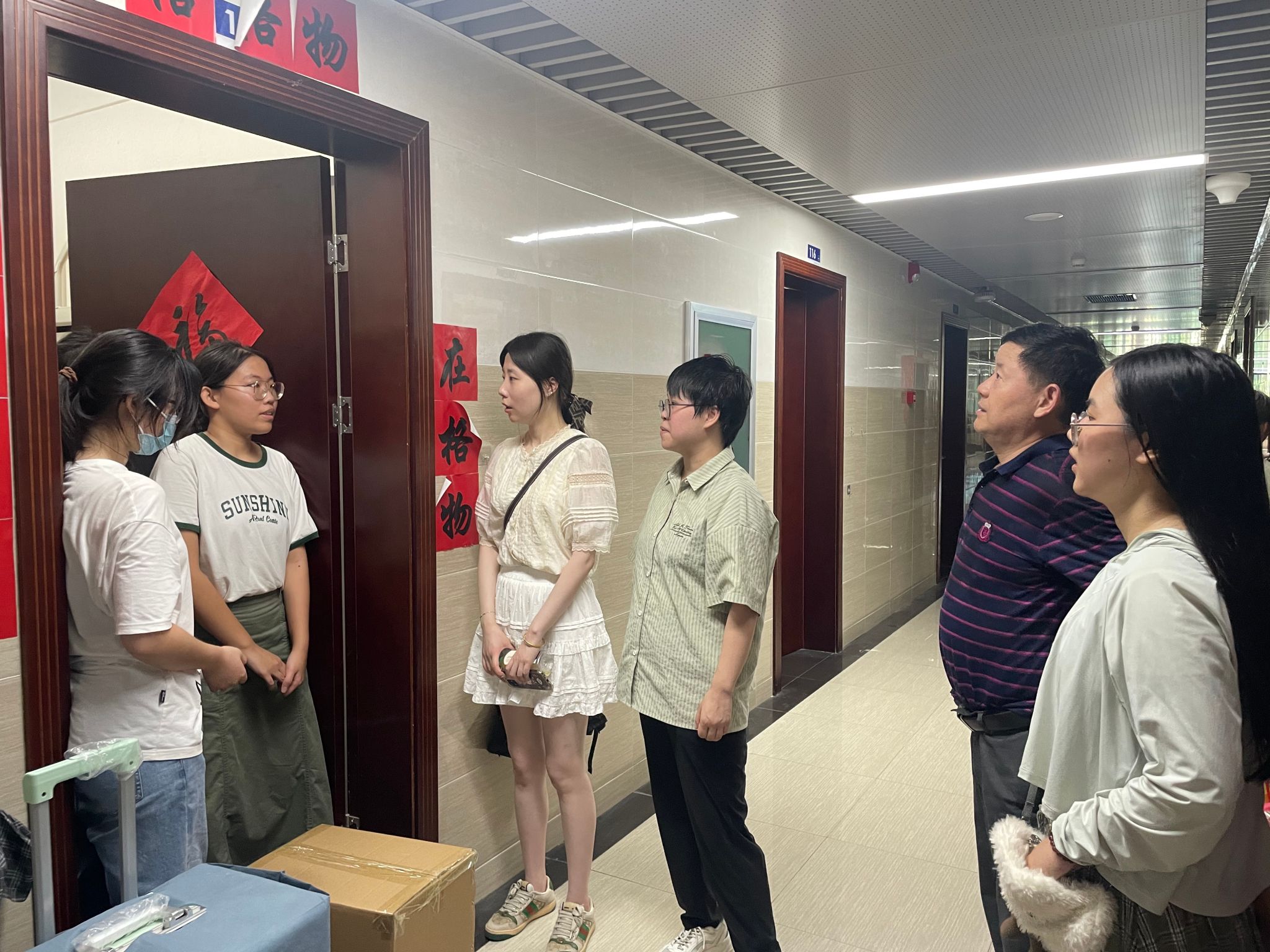 中午11点,最后一批行李搬运结束,同学们开始了宿舍的打扫和整理工作,院领导、班主任、院办及学工组老师们走访慰问搬迁学生,询问宿舍整理情况,为同学们答疑解惑,帮助大家尽快适应新环境。