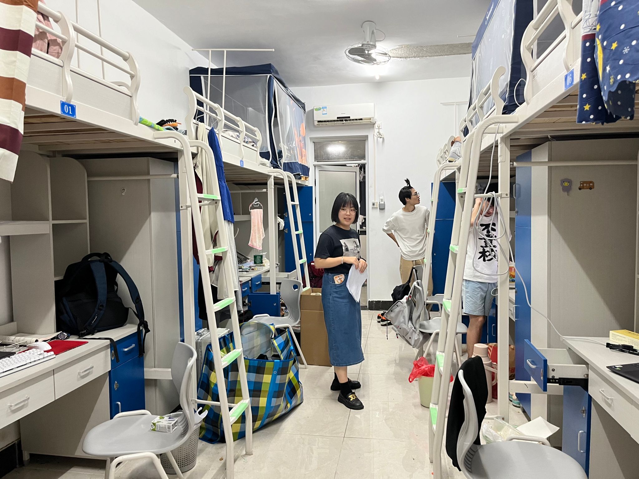 搬迁前一晚,2023级辅导员闫维蓉和兼职辅导员史莹莹逐一走访宿舍,深入了解同学们的行李打包情况,叮嘱搬迁细节,温馨提醒同学们打扫宿舍卫生,保持开学时宿舍的样子。
