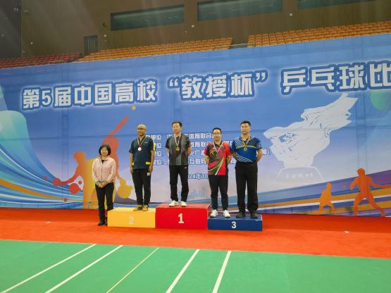 日前,第五届中国高校“教授杯”乒乓球比赛在吉林省四平市举行。我校获得优异成绩,其中我院万波教授获40-49周岁组获得男单第三名、男双第三名(搭档武汉大学戴宾教授)。 本次“教授杯”乒乓球赛由中国大学生体育协会主办,中国大学生体育协会乒乓球分会执行,四平市文化广播电视和旅游局承办,吉林省嗨购英城互联网信息服务有限公司协办。共有来自70多所院校200多名教授参加比赛。 通讯员:万波 审核人:李国昌