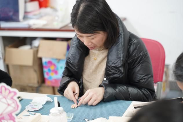 阳光在贝母表面折射出七彩光晕,映照着女老师们低垂的眉眼。往日敲击键盘的指尖此刻轻拈薄如蝉翼的贝片,精密程度不亚于芯片蚀刻。金属工具与天然材质碰撞的脆响,编织成穿越时空的韵律。当第一支嵌着螺钿玉兰的发簪成型时,满室响起清泉般的惊叹——那贝母花瓣竟在光影流转间呈现出从青白到淡紫的渐变,恍若把江南烟雨定格在方寸之间。