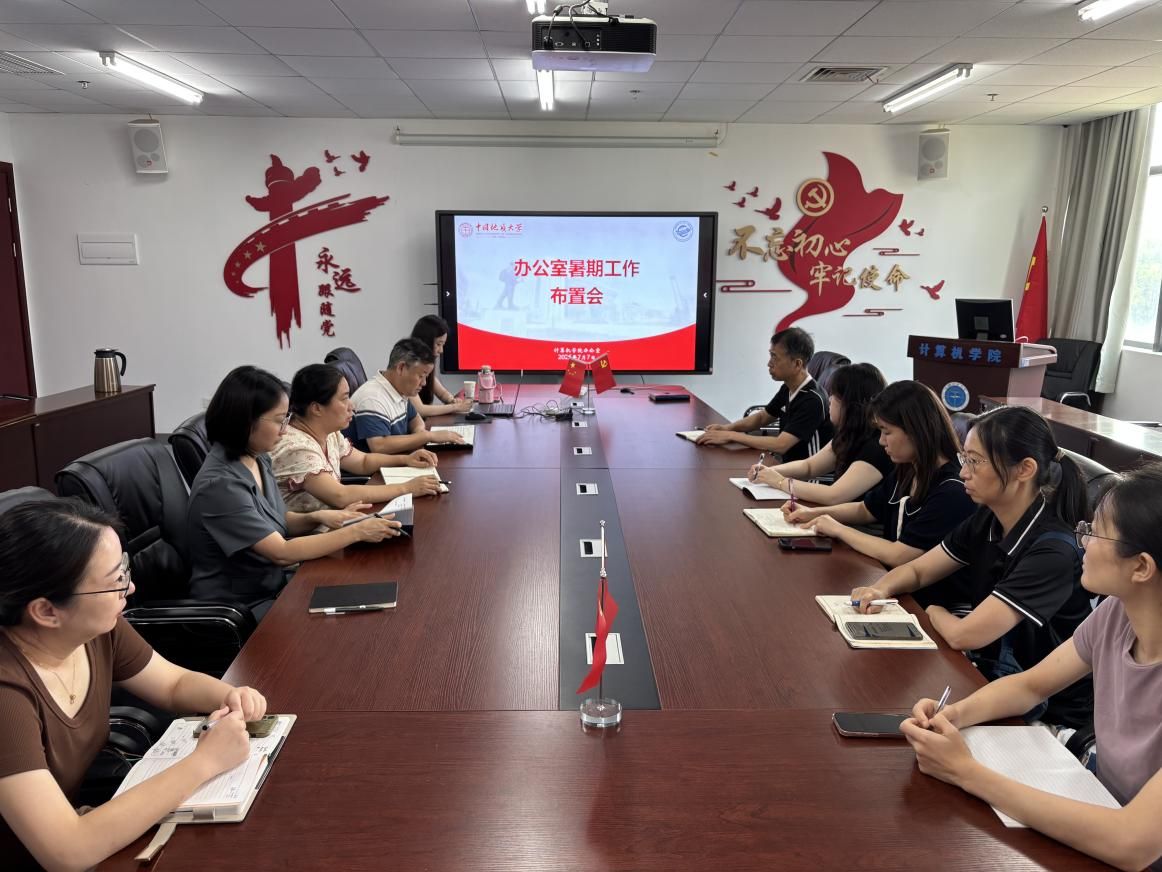 2025年7月8日上午,学院办公室召开暑期工作布置会。党委书记李国昌及院办全体职工参会。办公室主任卢笙主持会议。会议围绕服务质量提升及暑期重点工作安排展开,为暑期及新学期工作锚定方向。