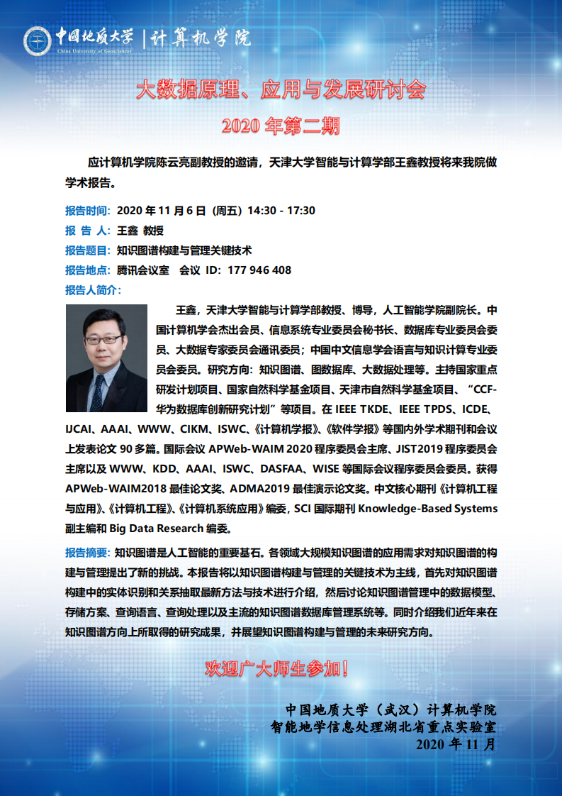 学术会议——2020年第二期大数据原理、应用与发展研讨会