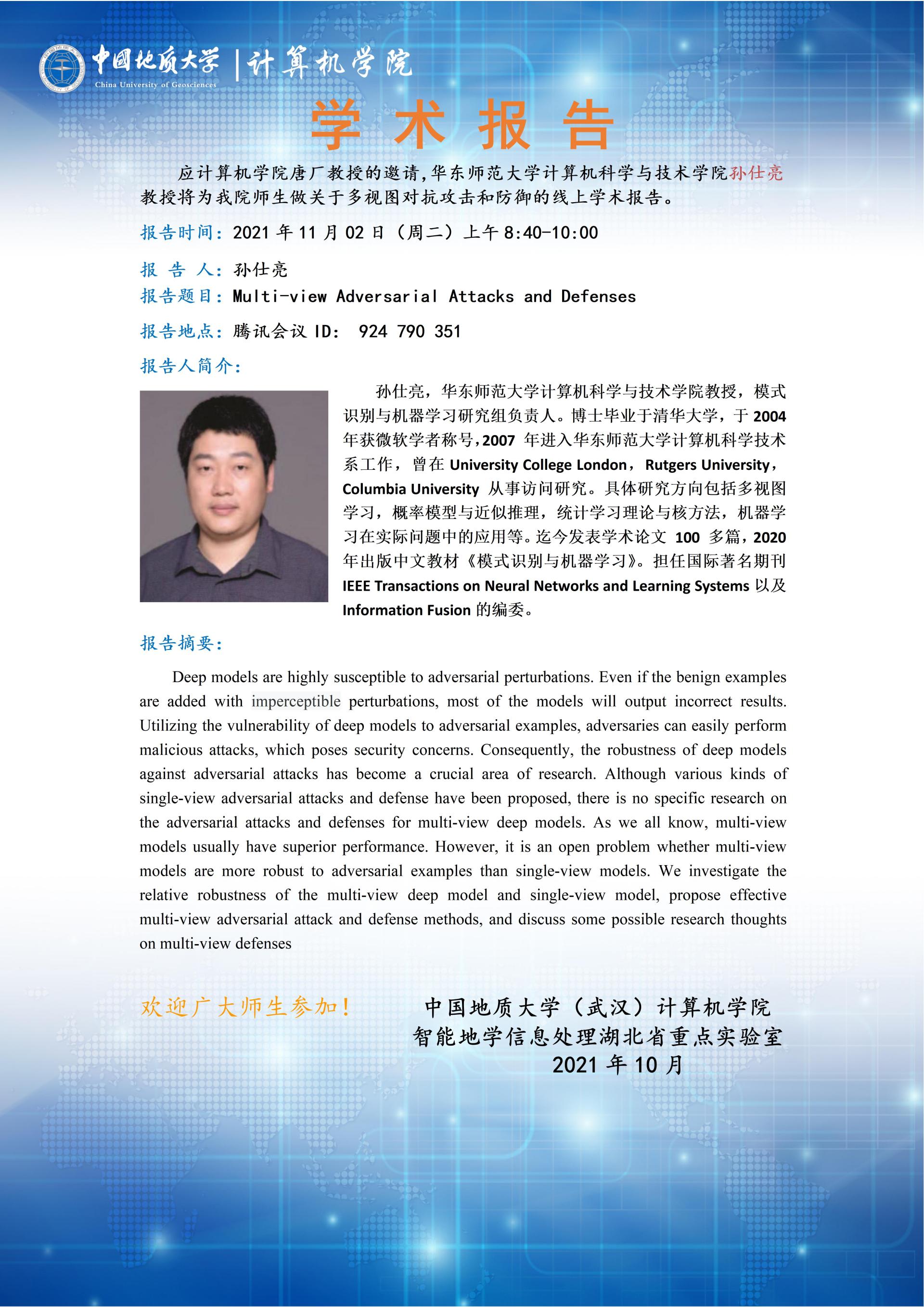 学术报告——华东师范大学孙仕亮:Multi-view Adversarial Attacks and Defenses