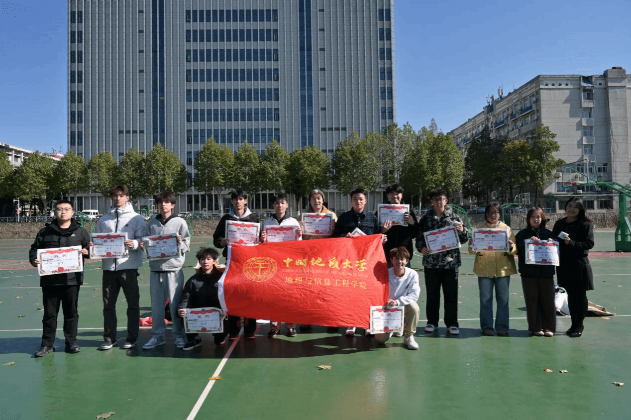 历经多轮对决,各支队伍的排名尘埃落定。六院辅导员依次登台,为获奖队伍颁发荣誉。beat365在线体育官网登录入口凭借稳定发挥与顽强斗志,成功摘得季军;经济管理学院实力强劲、默契十足,一路披荆斩棘荣获亚军;地理与信息工程学院在多场硬仗中奋勇拼搏、锐不可当,最终问鼎冠军!领奖台上,队员们手捧奖品与证书,笑容灿烂、眼神坚定,每一份荣誉都凝聚着日夜训练的汗水,彰显着团队协作的力量。