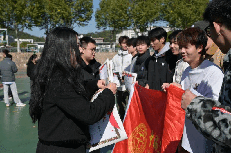 球员代表地理与信息工程学院阿尔斯上台发言:感谢队友并肩作战的坚守,感谢后勤保障的默默守护,更感谢辅导员老师全程的悉心指导,这段赛场经历,是青春最珍贵的收获!