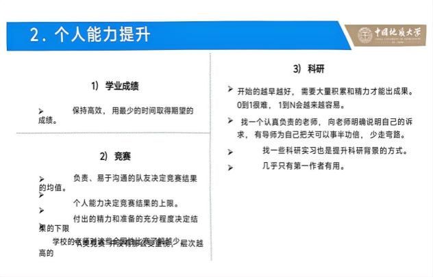 今天听刘铭权学长讲创新 A 类推免才知道,原来搞科研、参加竞赛突出也能争取保研!我本身就对各种竞赛很感兴趣,本来怕这是“不务正业”,但现在心里踏实多了,有了明确的方向!