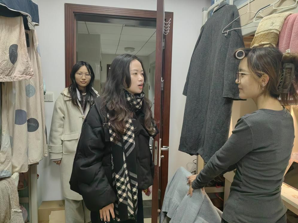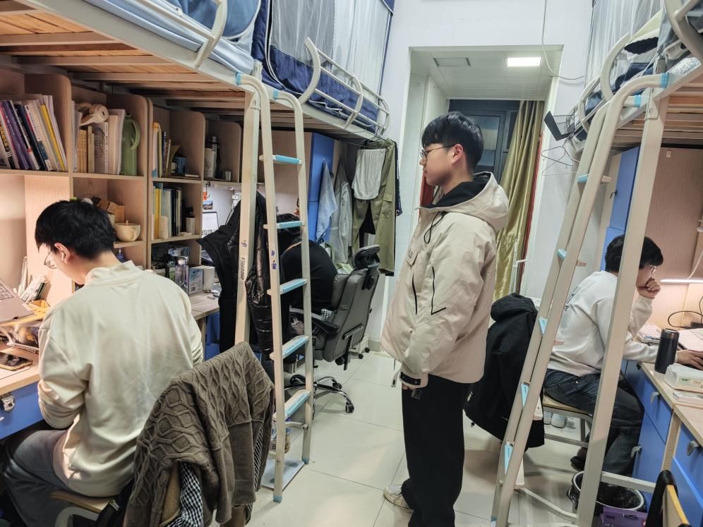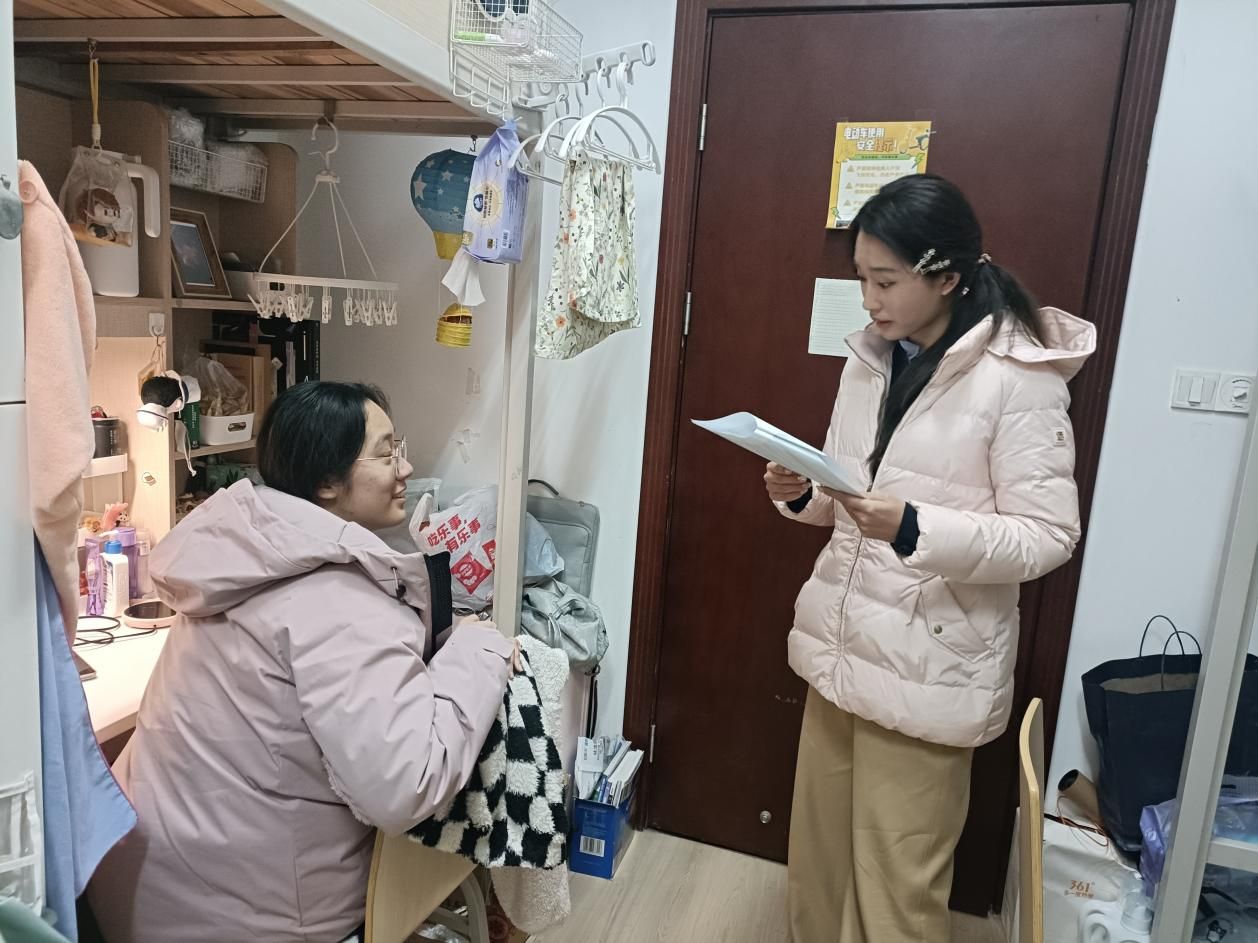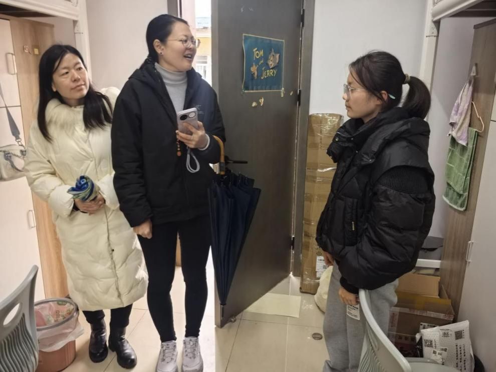 在亲切交流的同时,辅导员老师们也化身“安全卫士”与“生活管家”,对宿舍的安全卫生状况进行了细致排查。从用电规范到消防设施,从内务整理到卫生死角,老师们逐一查看、耐心指导,针对可能存在的安全隐患现场提出整改意见。“插排不要放在床头”“人走务必断电”“陌生链接不要点”——一句句朴实而具体的叮嘱,既是对规章制度的重申,更是对同学生命财产安全的高度负责。老师们还特别提醒同学们,春季是情绪波动的高发期,要关注自身心理健康,学会调适压力,保持积极乐观的心态,遇到困难及时向辅导员或学院寻求帮助,希望同学们共同维护安全、整洁、文明、和谐的宿舍环境。