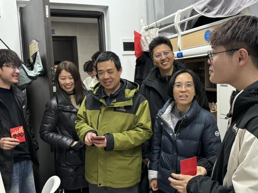 学院领导和老师们深入学生宿舍,与同学们亲切交谈,细致询问大家的假期生活、返校行程是否顺利、到校后的适应情况以及新学期的学习规划。李红丽关切地叮嘱同学们,要及时从假期氛围中收心聚力,尽快找回学习节奏,尽早树立明确目标,科学规划学业与个人发展,要以昂扬的姿态投入到新学期的奋斗中。林小艳勉励大家,要珍惜稍纵即逝的大学光阴,迅速完成从“假期模式”到“学习状态”的关键转换,要用饱满的热情和坚定的斗志去迎接成长路上的各项挑战。工会主席梁庆中温暖地表示,希望同学们珍惜在校的每一天,保持乐观向上的心态,锻造健康强健的体魄,遇到任何困难随时沟通,工会组织始终是同学们身后坚实的支撑与温暖的港湾。一句句暖心的话语,一次次真挚的交流,让同学们深切感受到了学院大家庭的关怀与温暖。