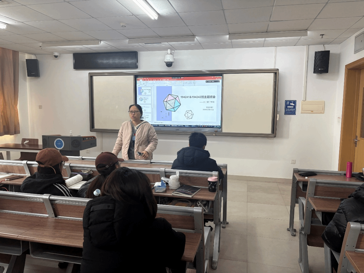 班主任武云老师在会上对194241班与194242班的整体学业情况进行了系统总结与分析。武老师从课程学习情况、成绩分布以及同学们在学习过程中存在的共性问题等方面进行了梳理,并结合实际情况提出了针对性的改进建议。