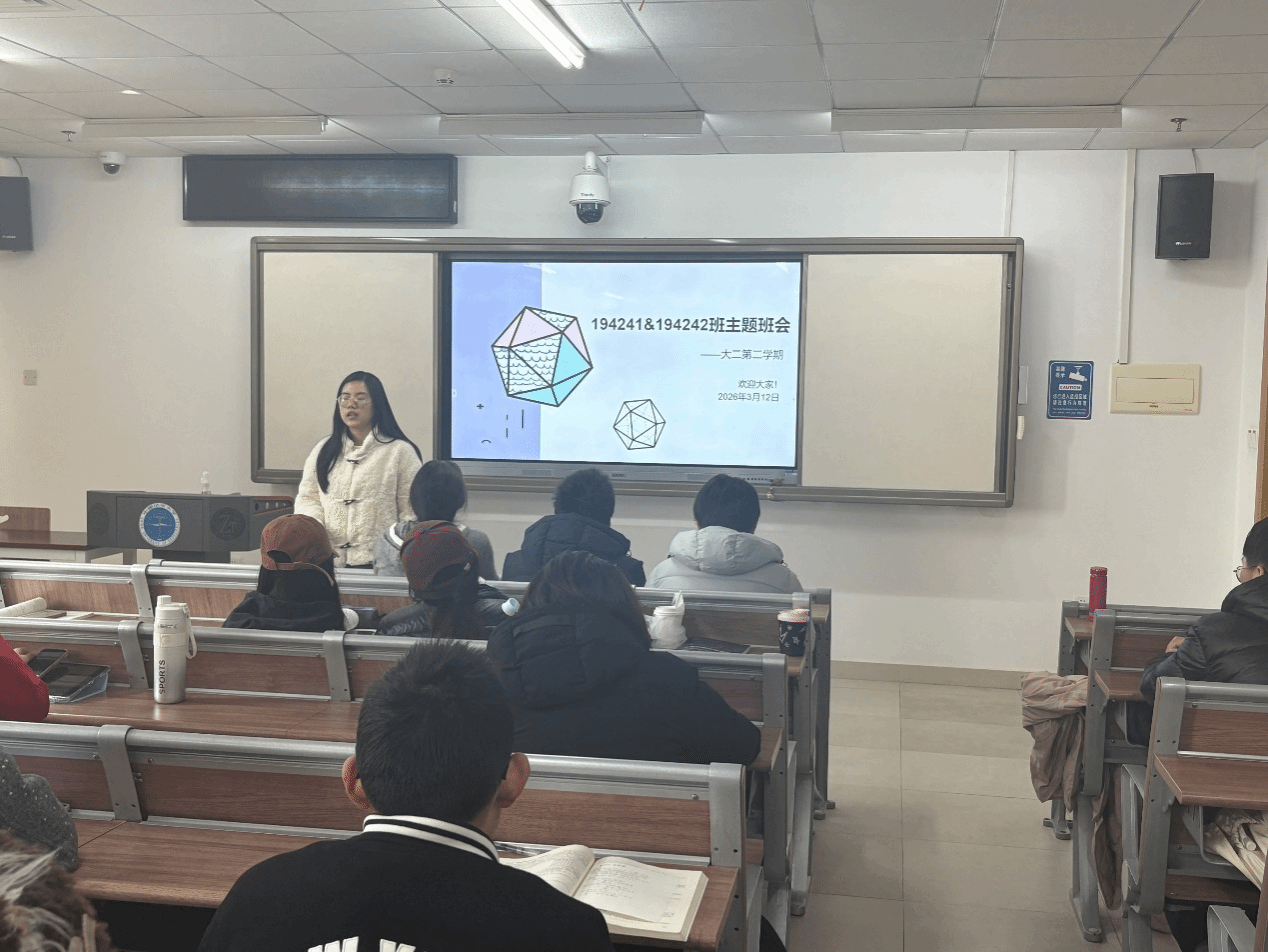 为帮助同学们明确新学期发展方向,做好学业规划与成长规划,2026年3月12日,空间信息与数字技术专业194241班与194242班在未来城校区公教二401室召开大二第二学期主题班会。本次主题班会邀请了学院党委副书记林小艳、辅导员刘佳丹老师、班主任武云老师及大四优秀学长参加,围绕学业发展、职业规划、心理健康与安全提醒等多个方面展开,通过经验分享与师生交流相结合的形式,为同学们新学期的学习生活指明方向。