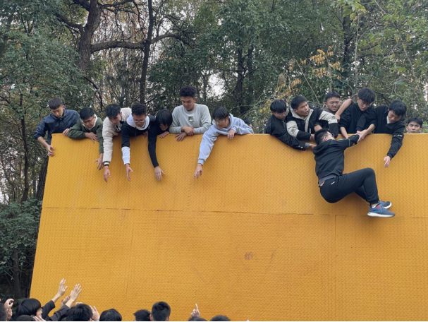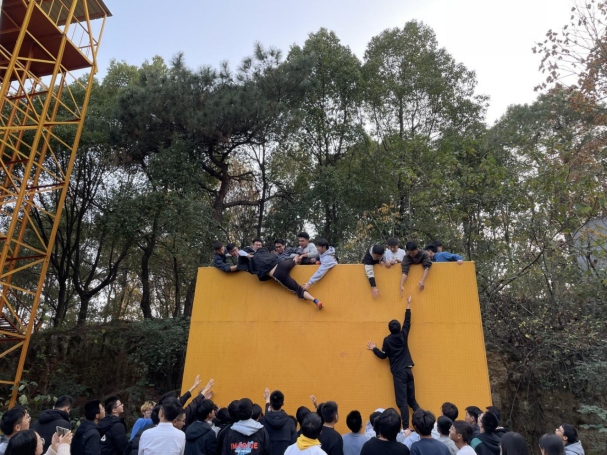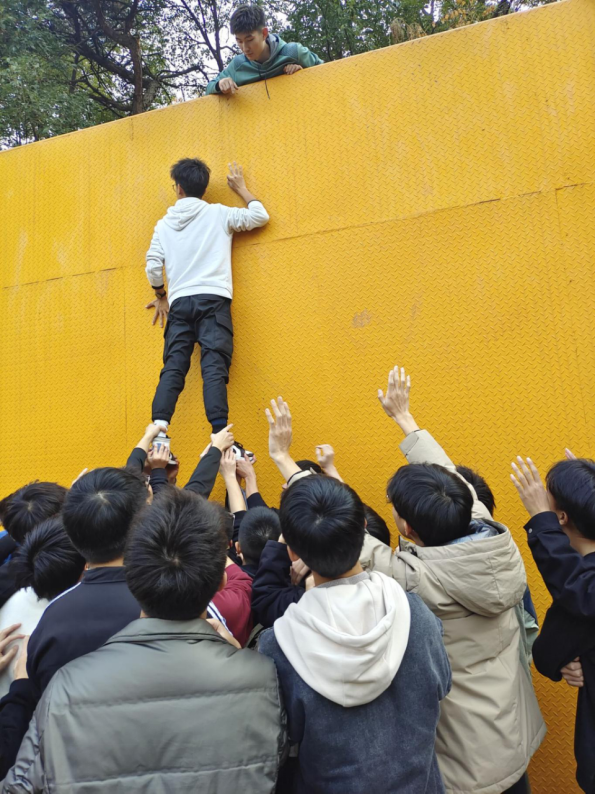 一面4.2米的高墙,没有任何求生工具并要在规定时间内完成百人逃生任务,在绝境面前你会如何做。同学们在前期培养责任感与信任感的基础上,由个体组建为真正的团体。在整个过程中,大家为了团队目标,展现出勇于牺牲和甘愿奉献的精神,最终同学们在短时间内圆满成功,打破了往届的记录,展现了21级同学们的良好风貌。