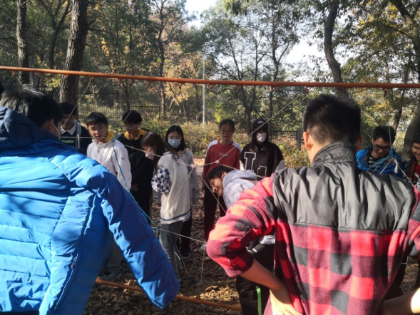 这是一个需要勇气与智慧的项目。同学们在开始前积极发言,贡献自己的策略。游戏过程中,大家分工有序,大部分人排队等待去“排雷”,小部分人站在“雷区”的旁边,指挥队友行进,并且记住正确的道路。在游戏结束后,大家拥抱欢呼,并且一同总结刚才的得与失。冷静的头脑,有序的团队分配,面对失败时有重新来过的勇气,这才是通关游戏的关键,也是青春该有的样子。