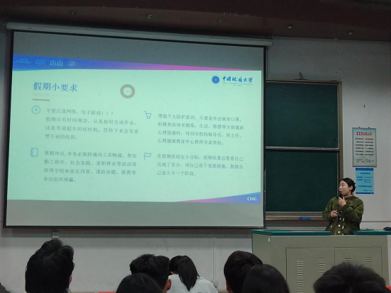 李雨静、张鹏、代德鸿分别讲解了寒假的安全注意事项、高数线代及c++复习技巧。安全方面主要强调回家过程中要保管好自身物品、不要听信陌生人讲话,合理规划自己的寒假生活,尽量减少外出。复习技巧方面强调要多请教、多做题、多实践,同时也给同学们推荐了相关指导书籍和学习网站,助力学生备战期末。
