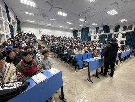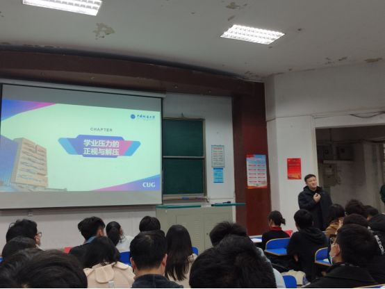 陈云亮以学业压力的正视与解压为主题进行讲话。他谈到,大学课程多、难度大,且同学们正处于学习方法从高中到大学转变、适应的阶段,因此同学们会不同程度地出现一定的学习压力;但大学同时也是同学们进行多元化学习、创新性学习的一个新阶段,要善于利用身边的各种资源,借助班级、老师的力量正视压力、解决压力,努力创造一个学习的正循环,以压力为动力,踏实学习、认真复习。