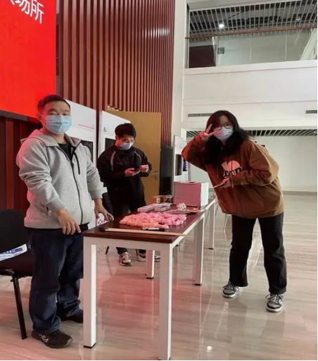 再来看看我们的礼品发放区~桌上的粉色玩偶,精美书签都是学院满满的关爱。我们不仅收获了同学们的甜美笑容,还收获了学院老师的现场点赞