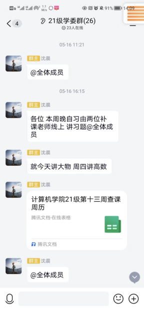 习近平总书记在全国高校思想政治工作会议上指出:“一所高校的校风和学风,犹如阳光和空气决定万物生长一样,直接影响着学生学习成长。” 为了不断提升学院“勤学、乐学、助学”的学习氛围,学院德育工作组从不同维度落实开展学风建设工作,如每周定时定点的学长学姐答疑晚自习、计科“E”课堂朋辈领英团的互帮互助、以及学工组“三查”工作的课堂考勤。了解每日每节到课情况的同时,每周将“三查”工作在班主任群、家长群、年级大群公示,坚持严在地大,学在计科的优良学风,为21级学风建设保驾护航!