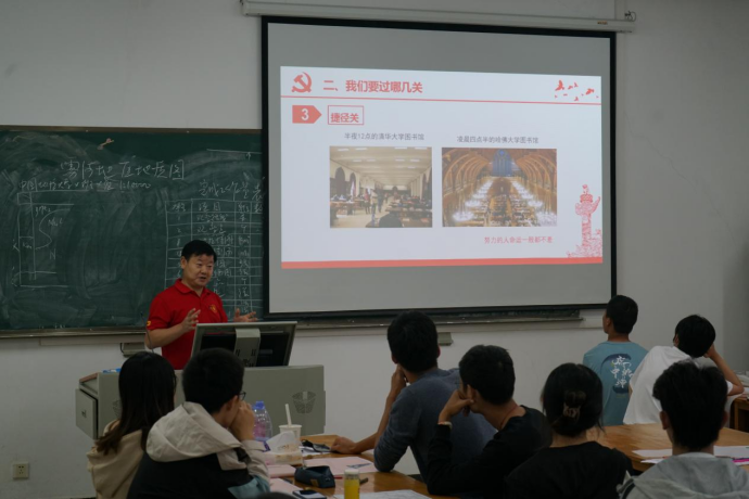 随后李国昌给同学们讲授了一节《跟着总书记过“五关”,把论文写在祖国大地上》的党课。