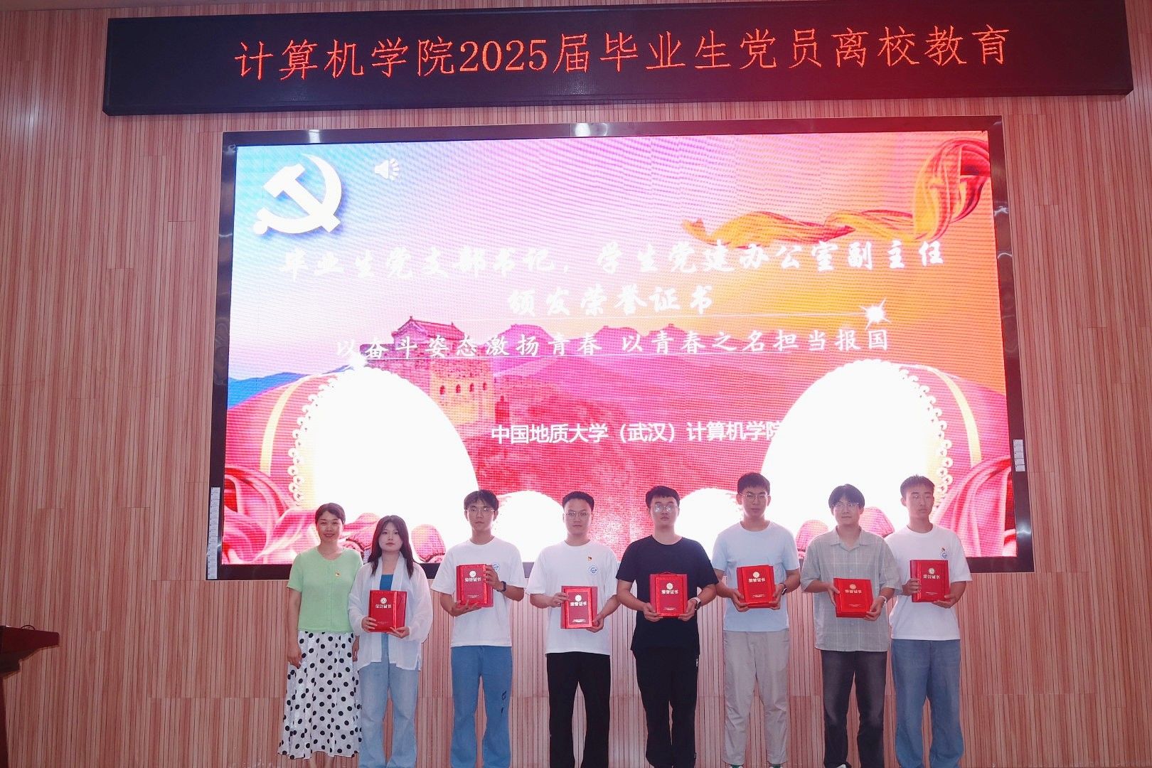 为进一步加强毕业生党员党性修养,强化纪律意识,增强组织观念,充分发挥毕业生党员的先锋模范作用,6月13日下午,学院于126报告厅举行2025届毕业生党员离校教育大会暨党纪学习教育主题党日活动,全体毕业生党员参加。学院党委书记李国昌,党委副书记、纪委书记林小艳,研究生辅导员李欢欢、学生党建办公室主任谭文博出席会议。谭文博主持会议。