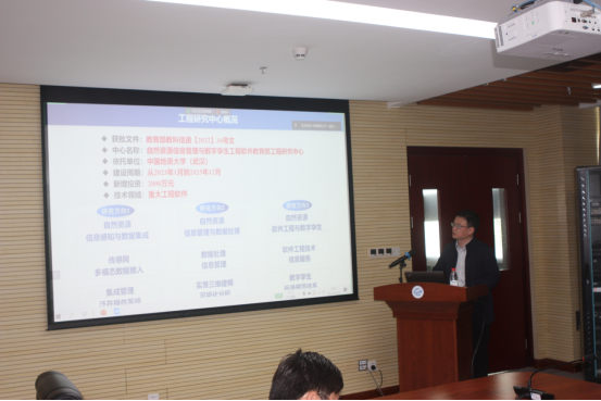 王力哲副校长代表学校致欢迎辞。他感谢教育部科技司高新处领导和专家组对我校科技平台建设的关心、指导和帮助。他表示beat365在线体育官网登录入口已开启了建设地球科学领域国际知名研究型大学的新征程,高水平创新平台的建设是学校高质量发展的重要支撑。“自然资源信息管理与数字孪生工程软件教育部工程技术研究中心”汇聚了我校一批长期从事自然资源领域信息化理论方法研究和高新技术研发的高水平研究团队,充分发挥地大学科优势,通过开展自然资源信息管理与数字孪生工程软件核心技术的研发,破解自然资源信息管理关键软件“卡脖子”问题。他希望工程中心通过持续的系统化建设,抢占自然资源信息管理与数字挛生技术制高点,促进“人才链、创新链、学科链、产业链”深度融合,为经济社会高质量发展贡献地大智慧。