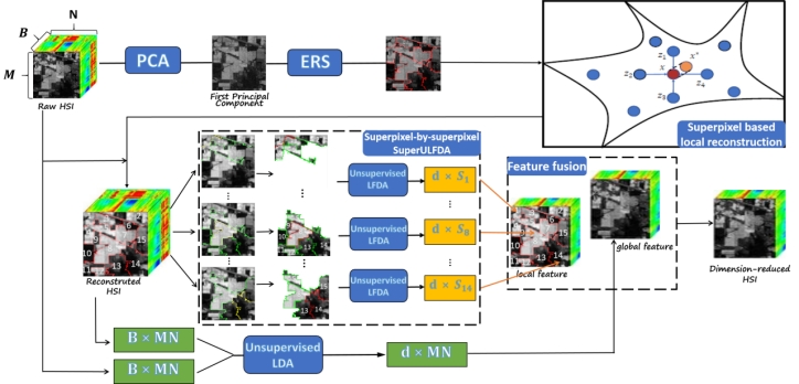 针对高光谱遥感图像特征维度高、噪声多、标签样本少带来的维数灾难问题,在本研究中作者提出了一种新的基于超像素的空谱特征提取模型S3-ULDA,其能有效地从不规则的同质超像素区域中提取低维且具有判别性的全局-局部空谱特征。具体来说,S3-ULDA有三个亮点:1)提出了基于超像素的无监督线性判别模型(SuperULDA),能够提取更高效的全局空谱特征;2)提出了基于超像素的无监督局部线性判别模型(SuperULFDA),能够提取更高效的超像素层局部空谱特征;3)通过融合全局和局部空谱特征,得到最终的基于超像素的全局-局部空谱特征,能够显著提升后续分类模型在小样本高光谱图像分类任务中的精度。在三个高光谱数据集上的对比实验表明,S3-ULDA超越了现有的最先进的特征提取和深度学习算法,验证了论文所提出算法的有效性。