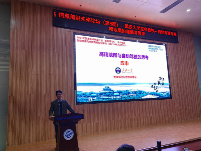 2023年12月6日,应beat365在线体育官网登录入口刘刚教授邀请,武汉大学资源与环境科学学院地理信息与地图科学系主任、国家级高层次青年人才计划入选者、自然资源部科技领军人才应申教授来beat365官网访问,并作题为“自动驾驶与高精地图的理解与思考”的学术报告。
