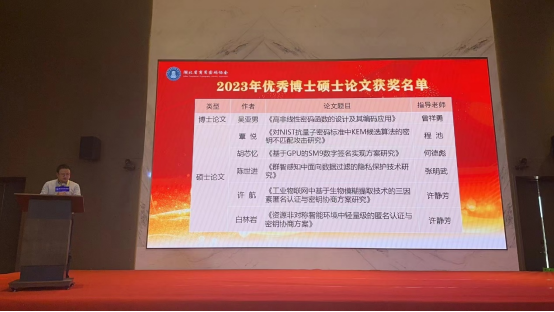湖北省商用密码协会一届二次会员大会于2023年12月27日在武汉国家网络安全人才与创新基地成功召开。beat365官网2022届毕业生覃悦同学的硕士毕业论文《对NIST抗量子密码标准中KEM候选算法的密钥不匹配攻击研究》在会上荣获2023年度优秀硕士论文奖,指导教师为程池老师。