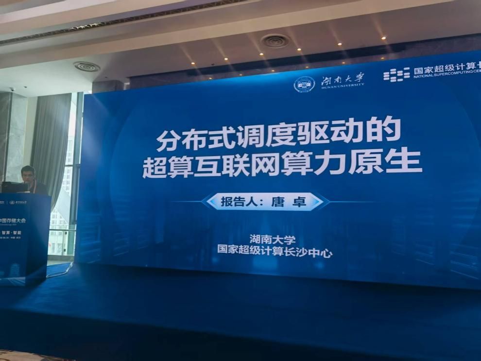湖南大学信息科学与工程学院院长、网络空间安全学院院长、国家超级计算长沙中心总工程师唐卓 教授 在 《 分布式调度驱动的超算互联网算力原生技术与实践 》 报告中, 系统阐释了分布式调度框架下算力原生技术的关键问题与创新实践。通过资源编排与跨域调度优化,其团队在算力高效利用与任务智能分配方面取得了重要进展,为超算互联网的发展提供了实践借鉴。