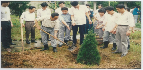 计算机系教职工参加植树劳动(1988年)